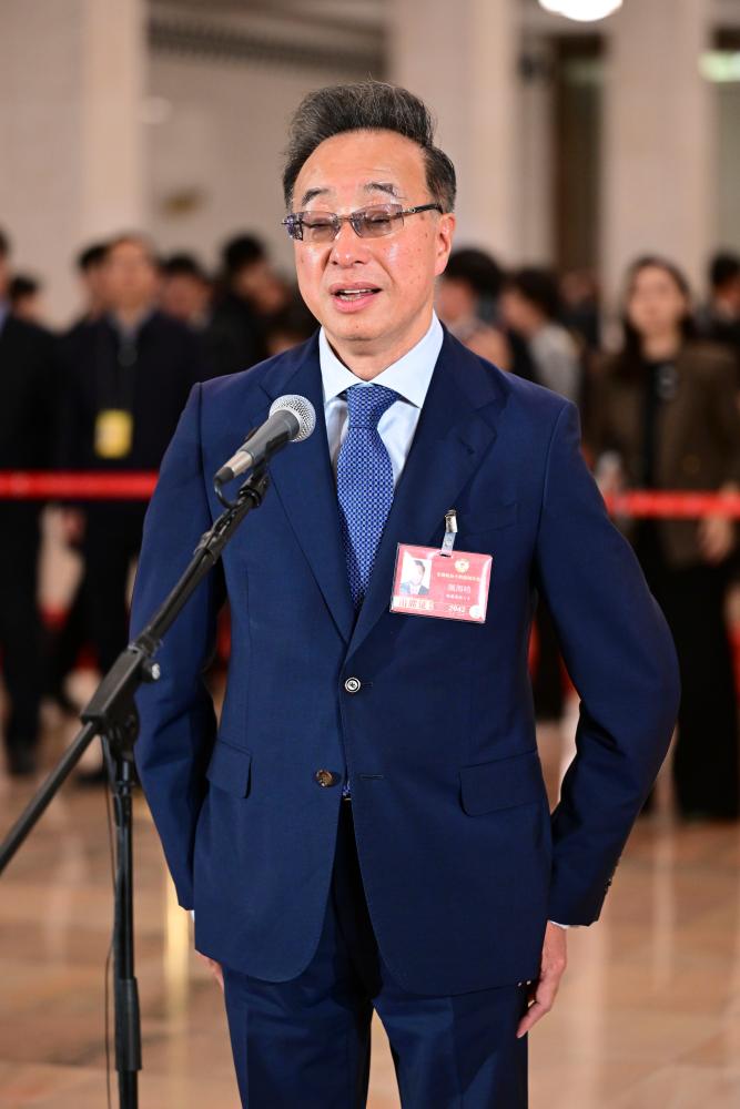 3月11日,全国政协十四届四次会议第三场“委员通道”集体采访活动在北京人民大会堂举行。这是全国政协委员屠海鸣接受媒体采访。