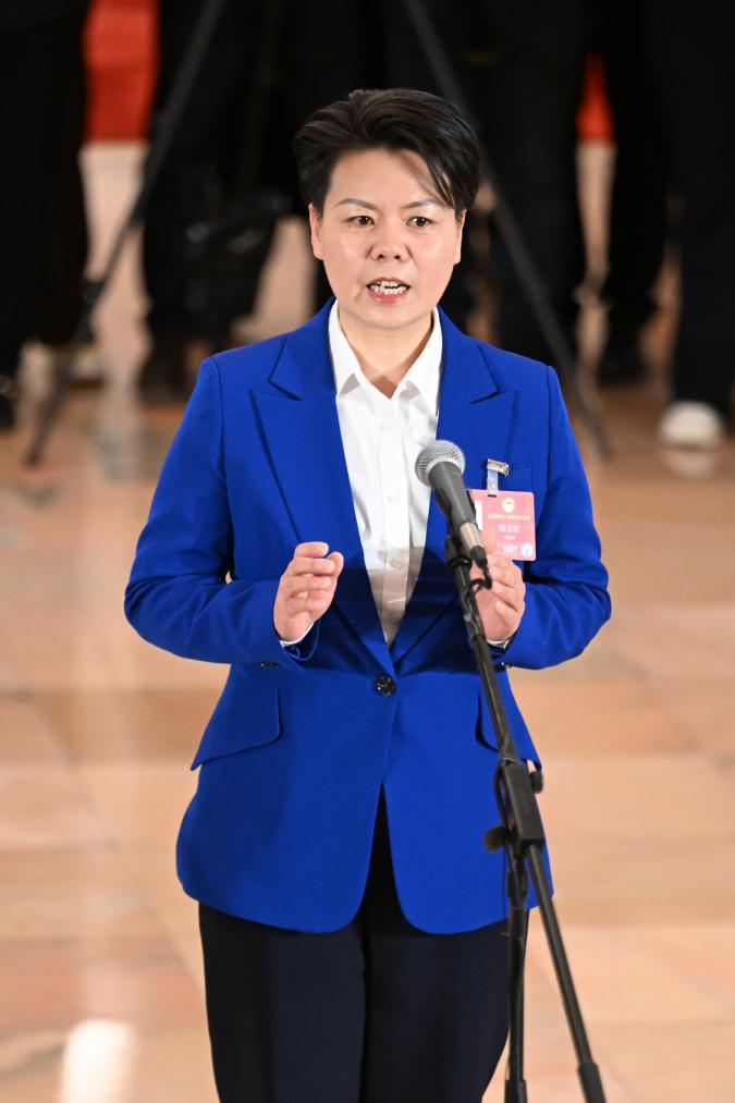 3月11日,全国政协十四届四次会议第三场“委员通道”集体采访活动在北京人民大会堂举行。这是全国政协委员程玉珍接受媒体采访。
