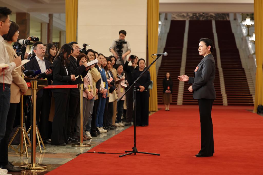 3月12日,第十四届全国人民代表大会第四次会议第三场“部长通道”集中采访活动在北京人民大会堂举行。这是司法部部长贺荣接受媒体采访。新华社记者 金立旺 摄