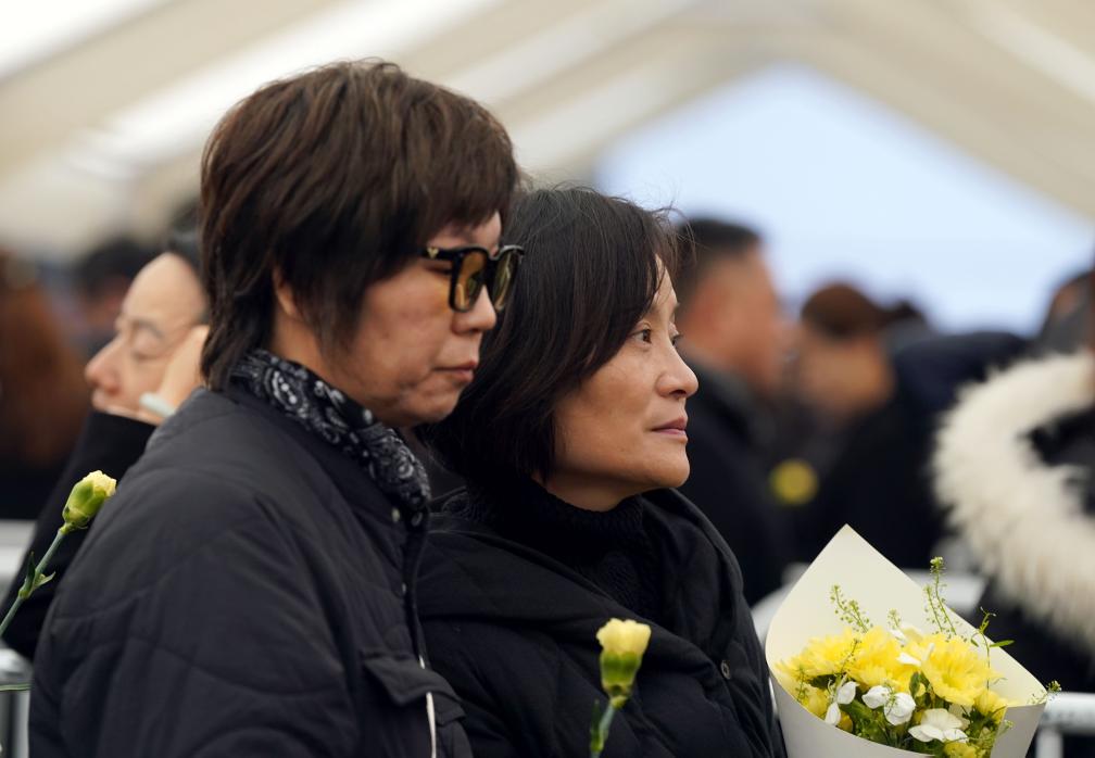 人们身着黑衣,将一枝枝黄花举在胸前,缓步前行,任哀思在春风中静静流淌。