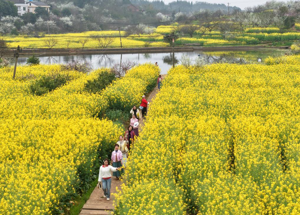 3月17日,游客在湖南省衡阳市衡山县萱洲镇踏青赏花。新华社发(曹正平摄)