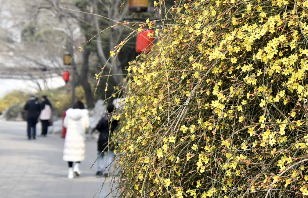 3月9日,在北京北海公园拍摄的迎春花。新华社记者 李欣 摄