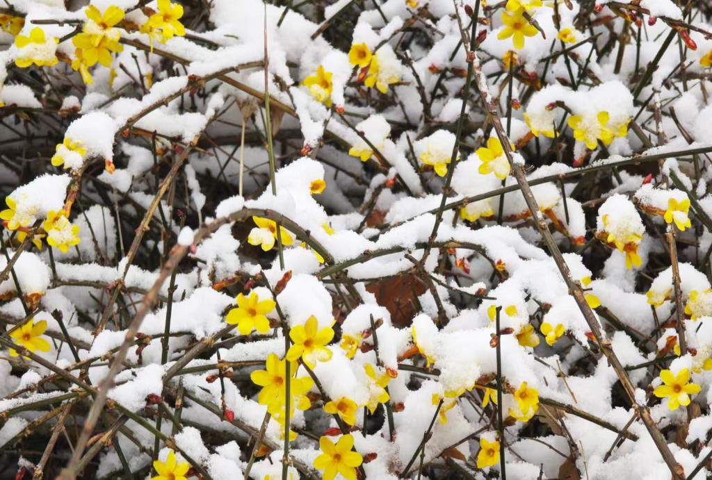 3月5日,北京雪中盛开的迎春花。新华社记者 陆浩 摄