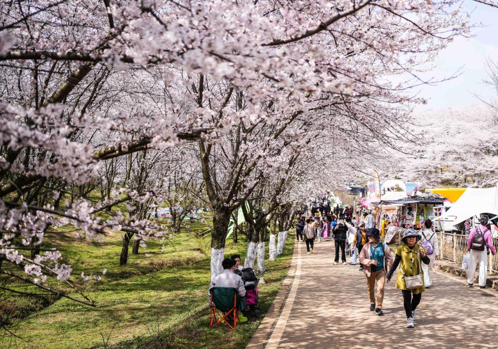 眼下,虽然盛花期已过,仍有不少海内外游客慕名而来。邹欢说,为应对每天上万人到访,当地组织交警、环卫、安保、摆渡车司机等数百人参与一线运营。