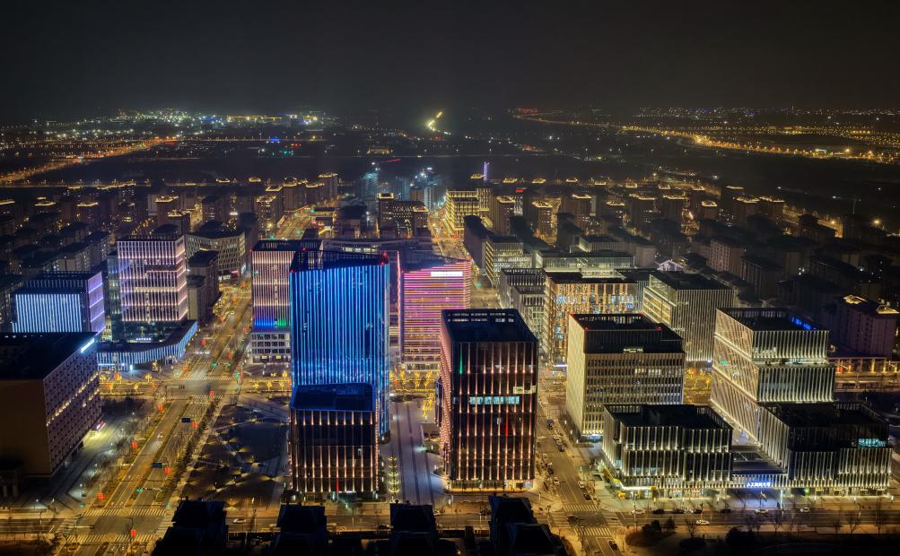 雄安新区商务服务中心片区夜景(3月16日摄,无人机照片)。新华社记者杨世尧 摄