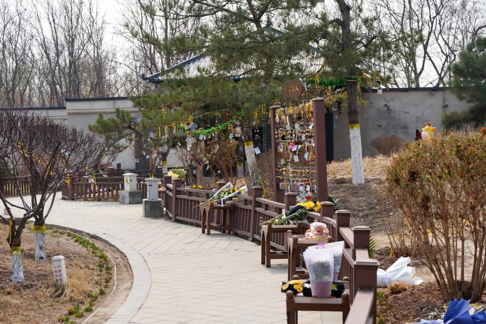 北京市长青生命纪念园内的二期自然葬区,一串串风铃和一束束鲜花寄托着哀思。新华网 杨涵 摄
