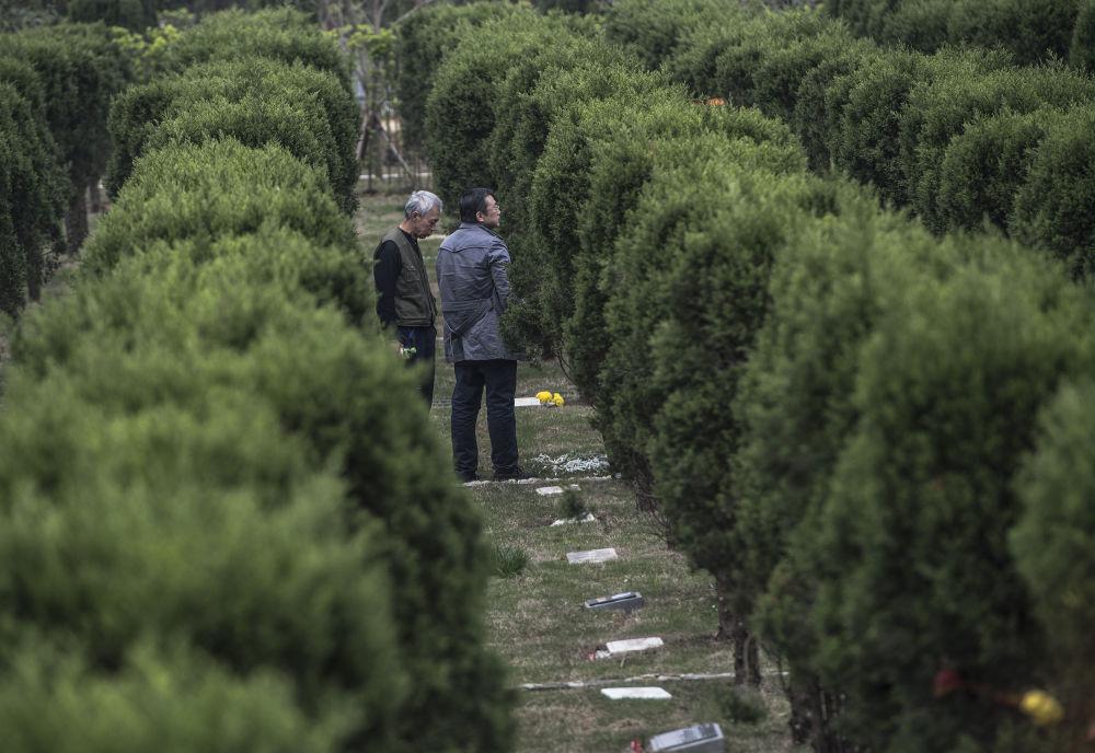 资料图片:湖北武汉龙泉山孝恩园,人们在树葬的墓穴前悼念故人。新华社记者 肖艺九 摄