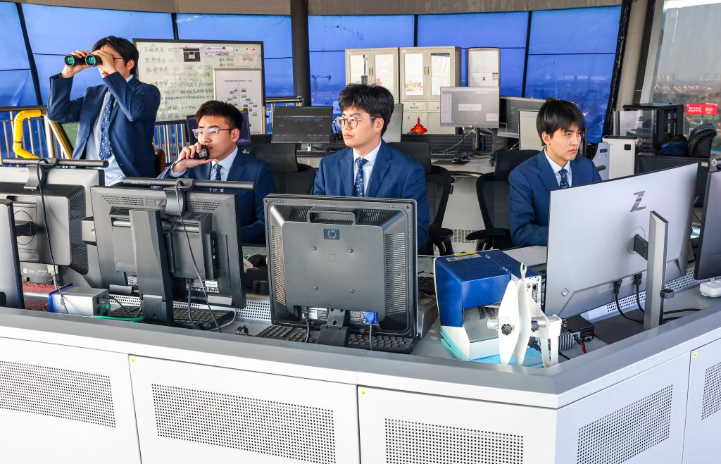 1月28日,管制员在扬州泰州国际机场塔台指挥飞机起降。新华社发(任飞摄)