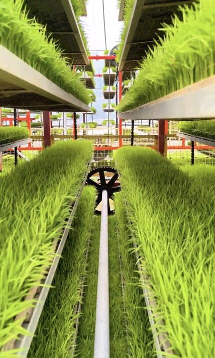 在江西上栗县的一处立体育秧工厂,一盘盘绿油油的秧苗长势旺盛,随着齿轮转动,秧苗仿佛坐上了“电梯”,均匀接受光照和水肥滋养。“有了这些新装备,育秧效率翻了几番。”种粮大户张祖权说。
