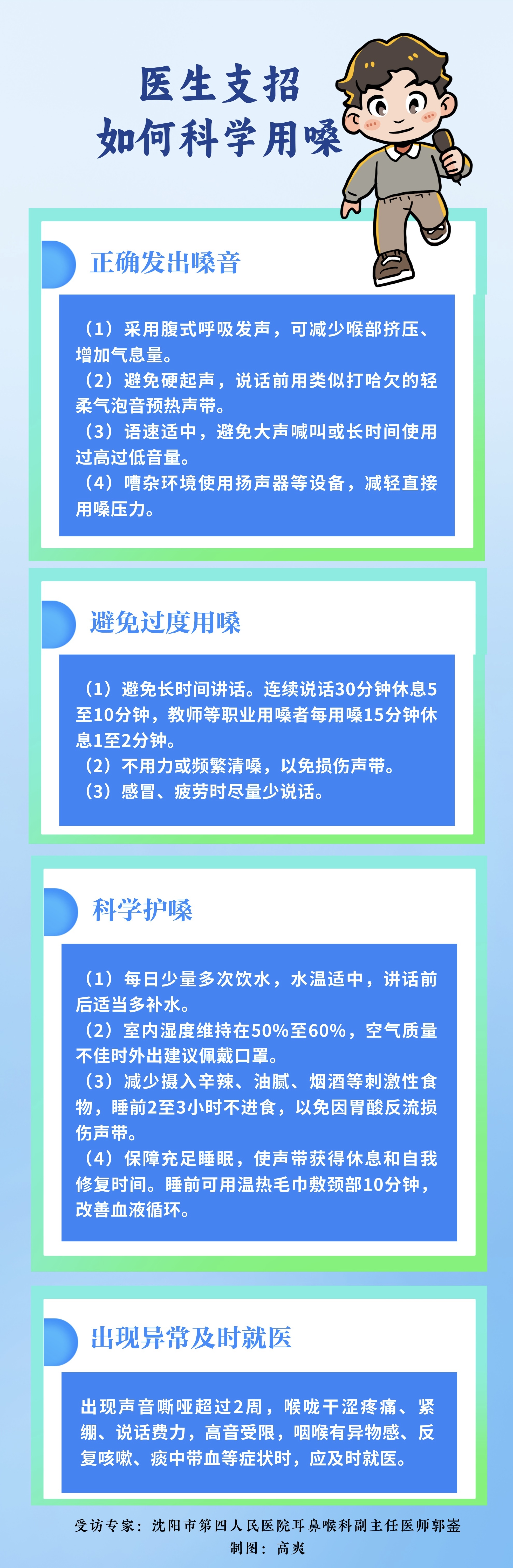 4月16日,世界嗓音日。日常生活中,长时间用嗓、烟酒刺激、内分泌紊乱等因素可能诱发嗓音伤害。如何科学用嗓护嗓?请听医生支招。