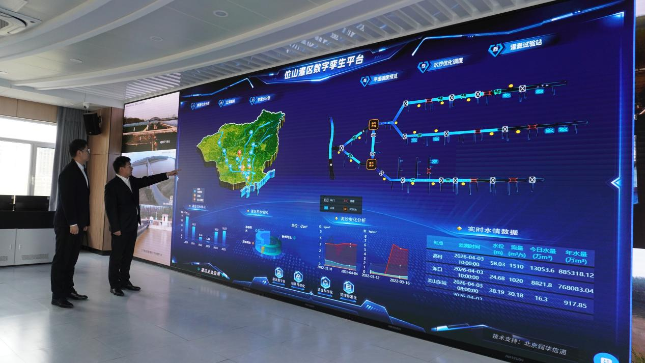 步入位山灌区智慧调度中心,数字孪生平台实时呈现着灌区全貌。水情、工情、墒情、雨情数据实时跳动,渠道水流、闸门状态、输水进度一目了然。依托多年信息化建设积淀,灌区构建起“1+3+N”数字孪生体系,通过模型运算、仿真模拟,实现水资源优化调度、水旱灾害预警、输沙减淤协同管控。昔日靠经验、靠跑腿、靠呼喊的调度方式,早已被数据决策、指尖调度、智能预警所取代。