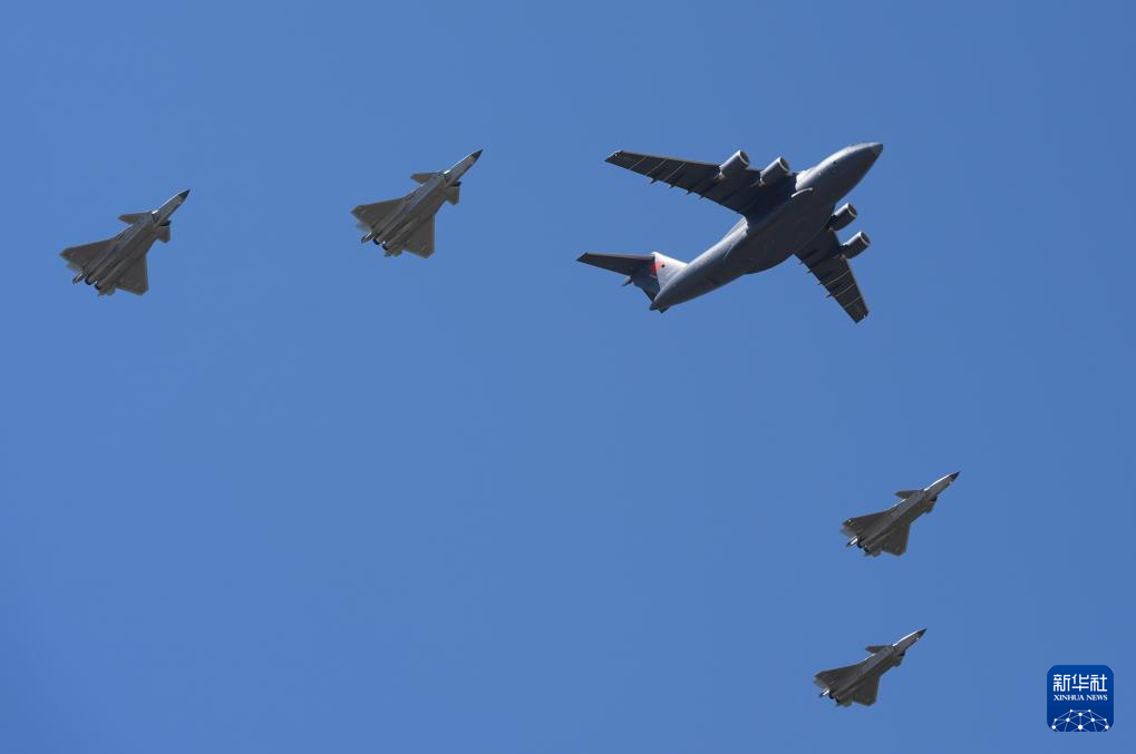 4月22日,第十三批在韩中国人民志愿军烈士遗骸由中国空军运-20B从韩国接回辽宁沈阳。“双20”五机编队列阵长空致以崇高敬意。4月22日上午,第十三批在韩中国人民志愿军烈士遗骸由中国空军运-20B从韩国接回辽宁沈阳。12位志愿军烈士英灵及146件遗物回到祖国怀抱。新华社发(余红春 摄)