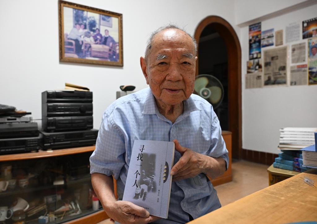 ↑4月19日,林宝山在家中展示他的书《寻找一个人》。