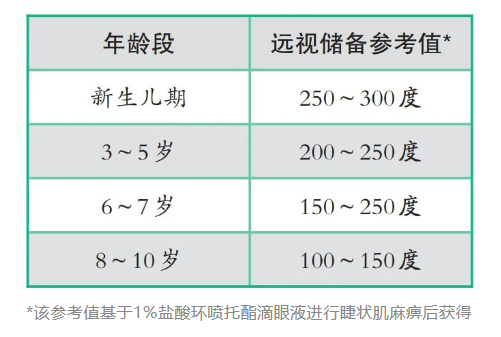 我们可以把远视储备想象成孩子出生时,父母在“视力银行”里给他们存入的一笔“抗击近视基金”,随着孩子身体发育,眼球逐渐长大,眼轴变长,远视储备也会逐渐减少。一般情况下,新生儿期的远视储备约为250~300度,3~5岁为200~250度,6~7岁为150~250度,8~10岁为100~150度,一般约到12~15岁由远视眼发育成正视眼(屈光度为-0.50~+0.50D),这笔“基金”才会消耗完毕。