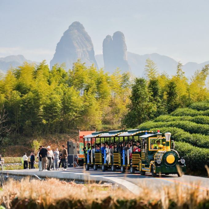 今年4月25日,湖州市长兴县小浦镇八都岕景区内,游客有序登上“杏福小火车”,游览春日银杏林。(长兴县委宣传部供图)