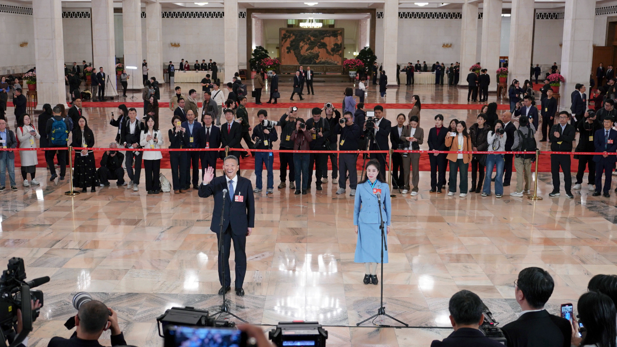- 5日上午8时许,人民大会堂中央大厅北侧,十四届全国人大四次会议首场“代表通道”如期开启。6位来自不同领域的全国人大代表面对记者分享奋斗故事,畅谈履职心声,彰显使命担当。