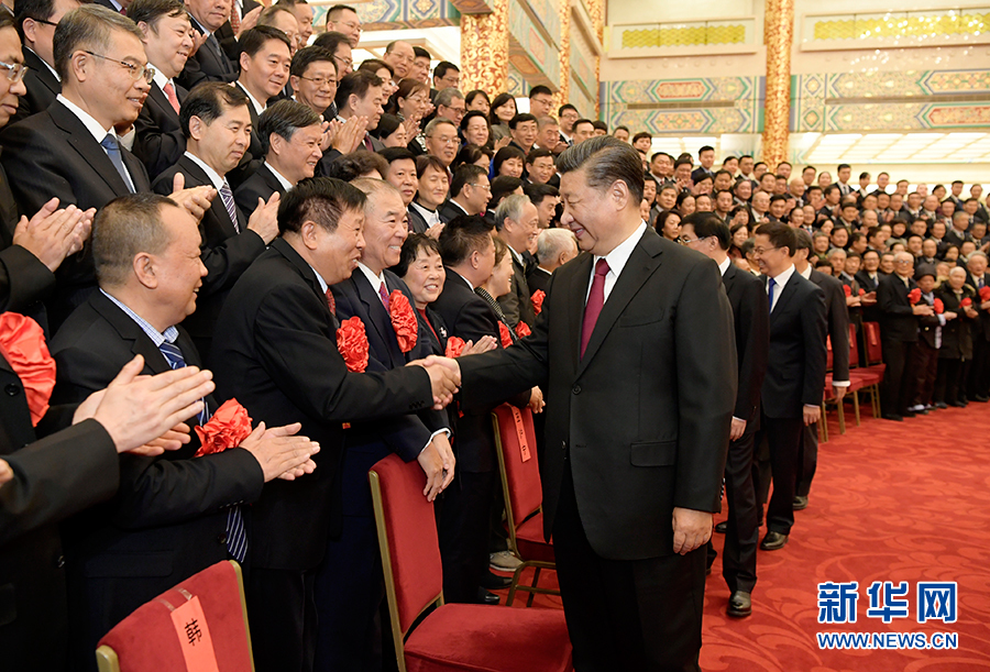 上午10时,习近平等来到人民大会堂金色大厅,全场响起热烈掌声。习近平等同代表们亲切握手,不时交谈,并同大家合影留念。