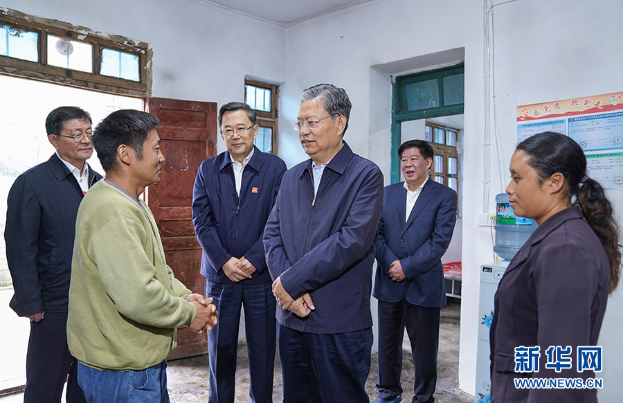 这是9月14日,赵乐际来到毕节市威宁县格书村,走访慰问贫困户。 新华社记者 张领 摄