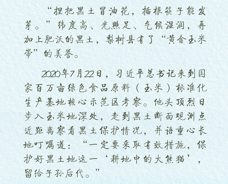 “我国人多地少的基本国情,决定了我们必须把关系十几亿人吃饭大事的耕地保护好,绝不能有闪失。”宝贵的土地,是大国粮仓的根基。让每一寸耕地都成为丰收的沃土,习近平总书记念兹在兹。