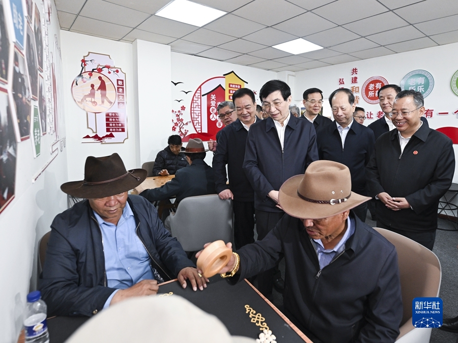 7月25日至27日,中共中央政治局常委、全国政协主席王沪宁在西藏调研。这是7月27日,王沪宁在拉萨城关区八廓街道鲁固社区民族团结进步之家考察。