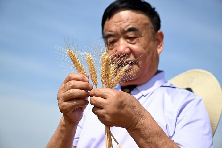 日头正盛,71岁的种粮大户徐淙祥深入田间,和农技专家们一起为试验麦种测产。“穗大籽多粒饱满,又是一个丰收年!”徐淙祥高兴地说。