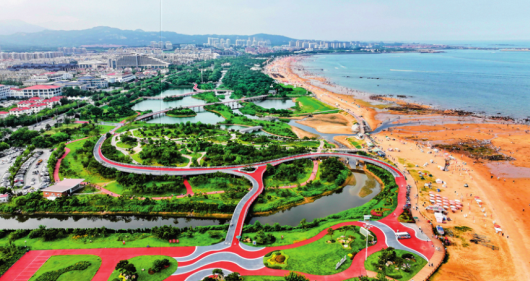 山东省日照市对沿海裸露场地及岸线破损处进行生态修复,建成约28公里的阳光海岸绿道(2024年8月8日摄)。郭绪雷摄/本刊