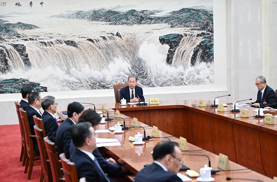 3月4日上午,十四届全国人大常委会在北京人民大会堂举行第四十一次委员长会议。赵乐际委员长主持会议。新华社记者 张领 摄