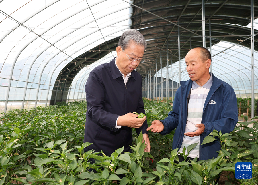 7月6日至8日,中共中央政治局常委、全国人大常委会委员长赵乐际在青海调研。这是7月8日,赵乐际在海东市乐都区寿乐镇高原冷凉蔬菜基地调研。
