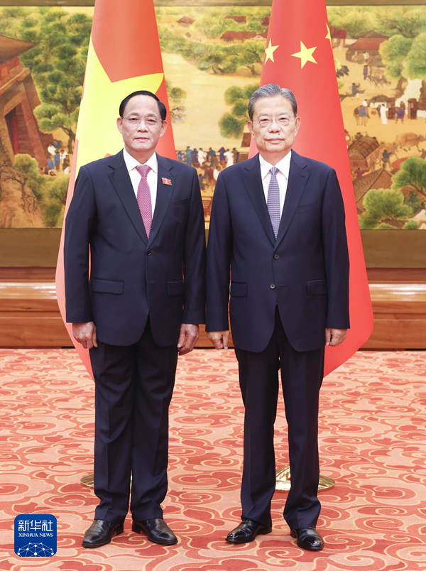 8月20日,全国人大常委会委员长赵乐际在北京会见越南国会副主席陈光方。