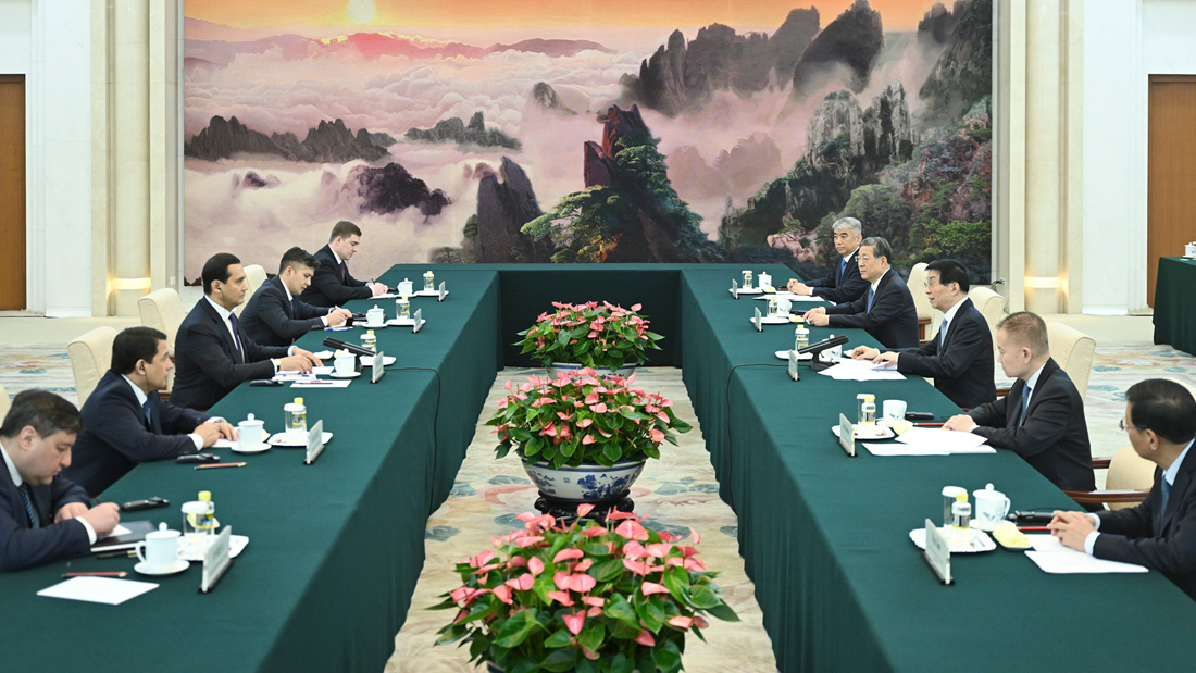 王沪宁会见乌兹别克斯坦总统战略发展顾问乌穆尔扎科夫