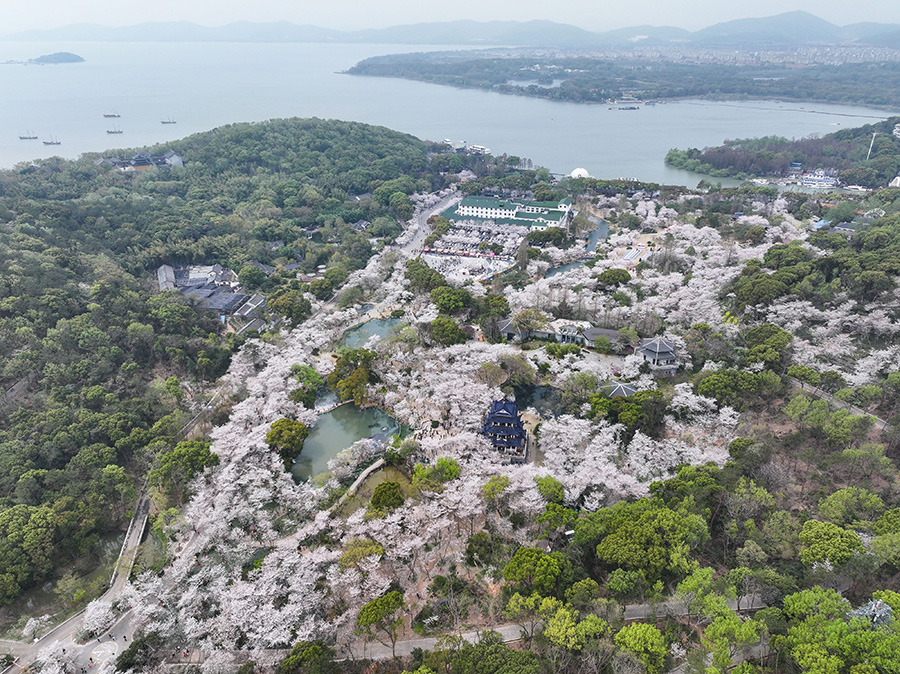 无锡市太湖鼋头渚风景区春色(2025年3月27日摄,无人机照片)。新华社记者 季春鹏 摄
