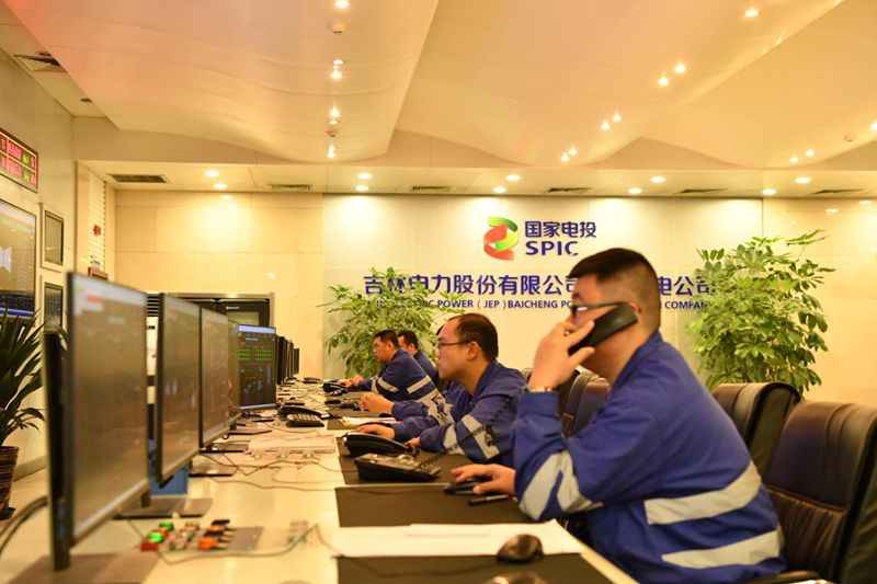 吉电股份白城发电公司发电运行人员正在精细调整机组参数,确保机组出力满足调度要求。(吉电股份供图)
