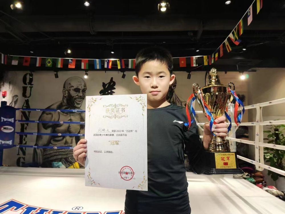 小作者曾获得2023年“武林风”青少年搏击联赛保定站、赤峰站37KG级两站冠军和2022年“万达杯”尚武国际青少年搏击联赛北京昌平站冠军。(刘玉春 摄)
