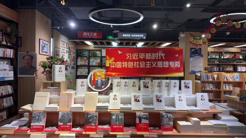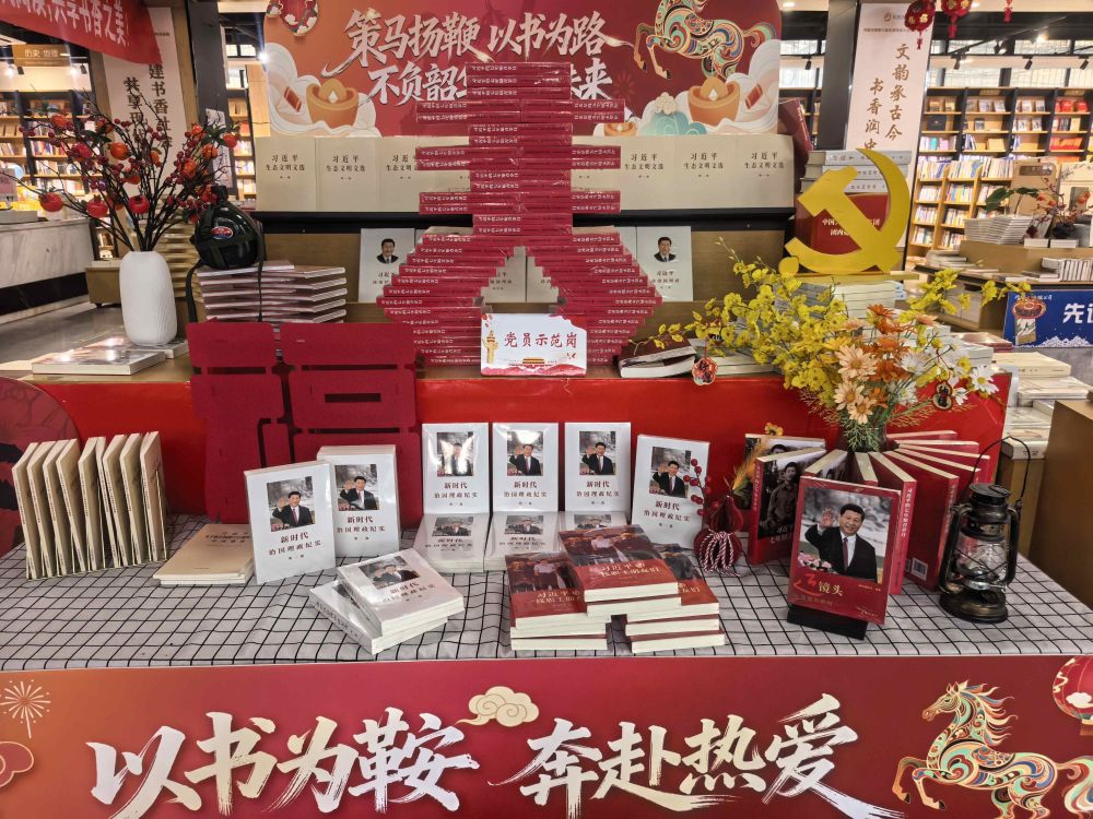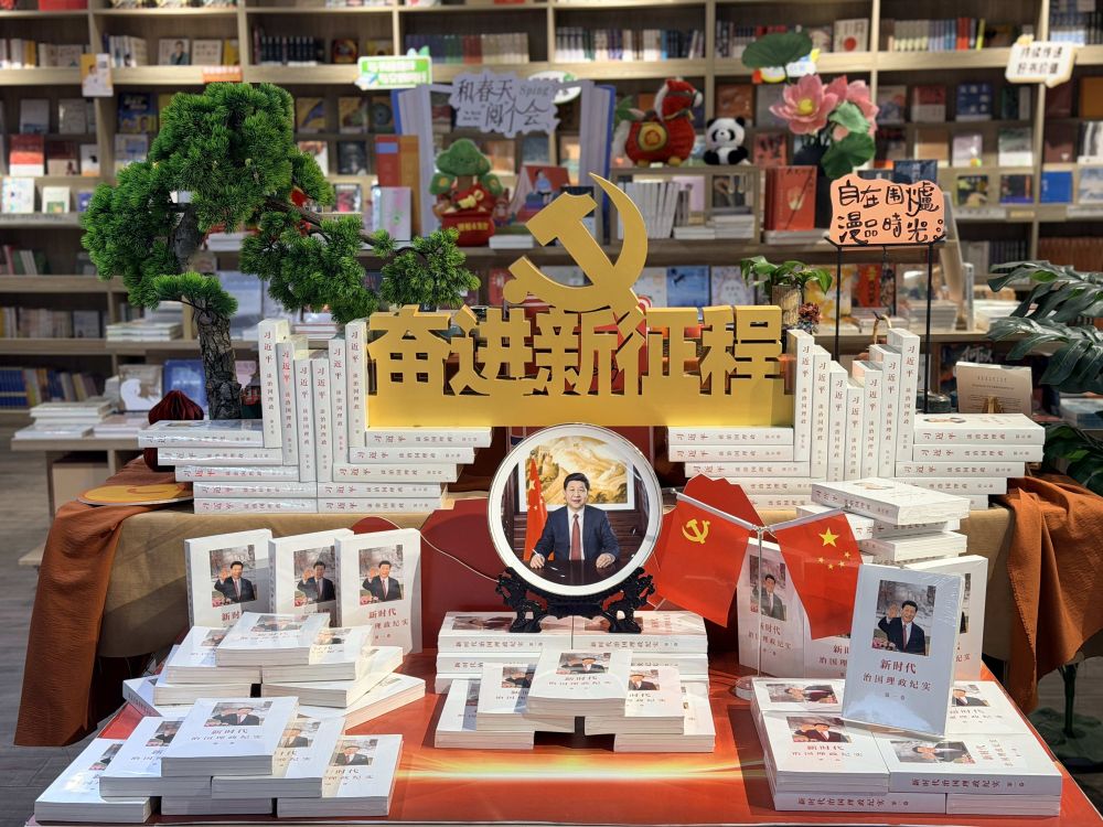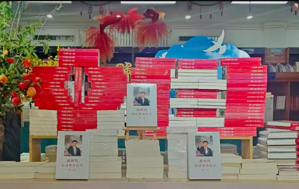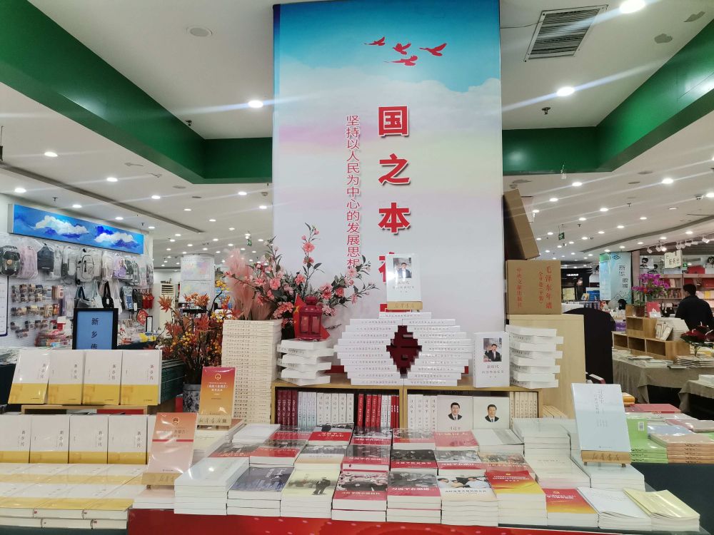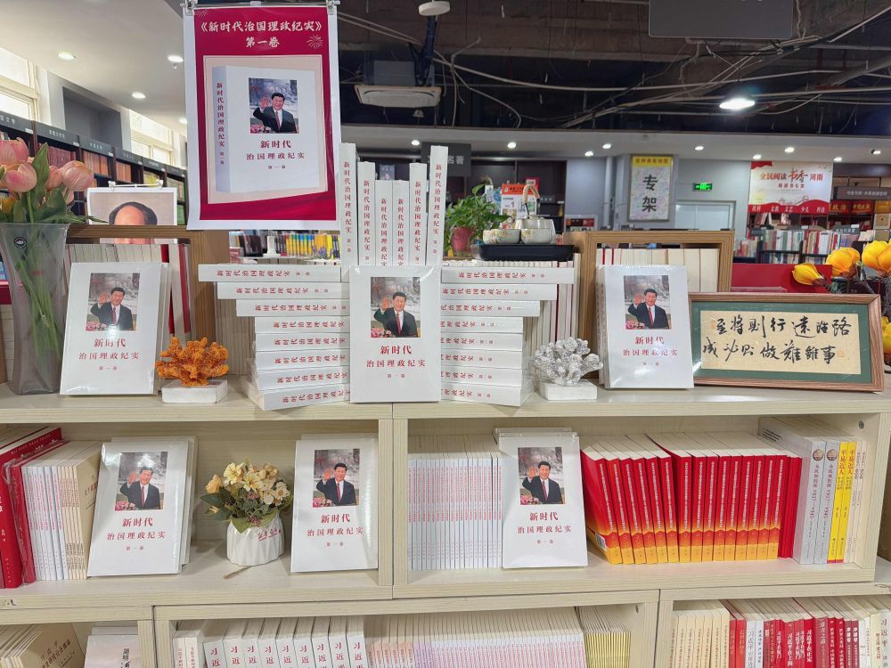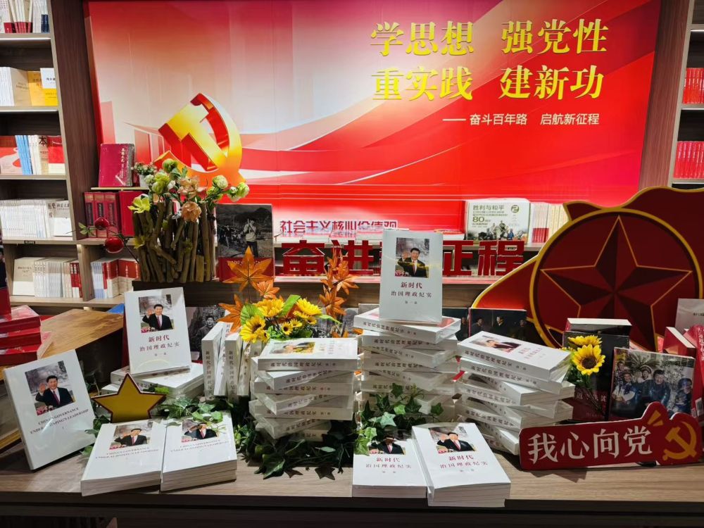 近日,河南省新华书店发行集团所属各大门店重点展示展陈《新时代治国理政纪实》(第一卷)一书。该书由新华通讯社编撰、新华出版社出版,面向海内外发行。