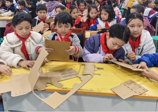 活动还组织了当地学生参观阿拉力乡乡镇科普馆,在老师的带领下,学生们近距离观看各类科普展品,了解力学、光学、生物学等基础科学原理,感受科技魅力。在仿机械手手工制作比赛环节,现场学生分组协作,利用简易材料制作仿机械手模型,锻炼了学生们的动手能力和团队协作意识,有效激发了学生的科学兴趣与求知欲。