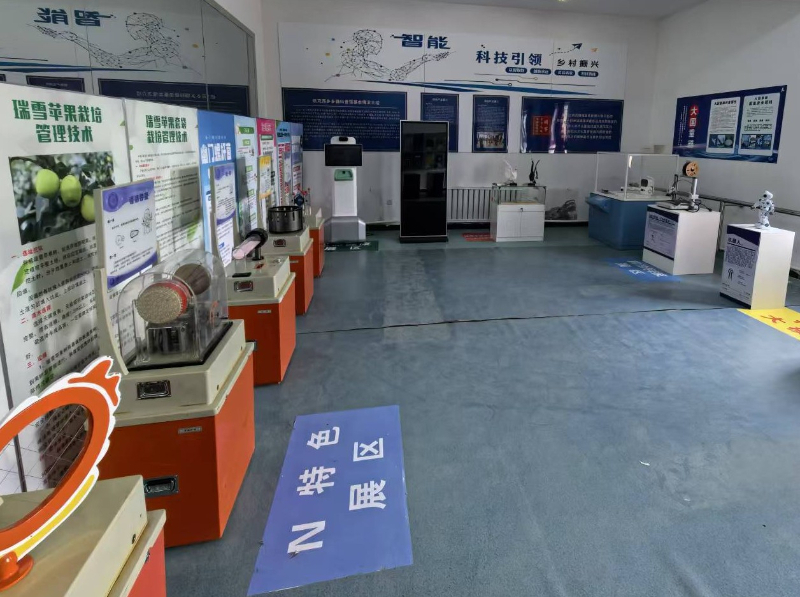 科普馆设有前沿科技、科学文化、特色内容等多个主题展区。在科学文化展区,手摇发电机等互动展品让公众在操作中理解基础物理知识。在特色内容展区,科普馆结合当地苹果主导产业,通过设置苹果标本墙、病虫害图谱展板等,向公众提供实用的病虫害防治科普服务。科普馆还结合公众实际生产需求,组织“科技进田间”等农技专题培训特色科普活动。