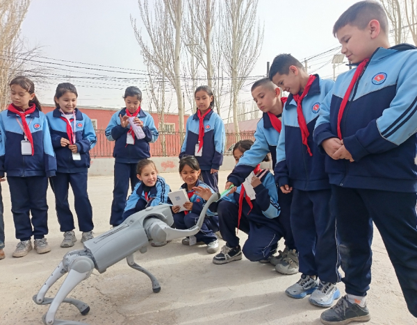 在智能科技体验环节,科普老师首先演示了机器狗的行走、转向、跳跃等基础动作,随后组织学生分组操作,亲身感受其运动原理与技术特点。科普知识竞赛环节则围绕生活常识、物理现象和农业科技等方面设置题目,学生在答题与讨论中不仅巩固了所学知识,也提升了团队协作能力。