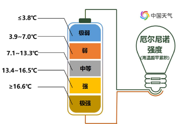 厄尔尼诺的强度划分,厄尔尼诺分为5个等级:较弱,弱,中等,强和极强厄尔尼诺