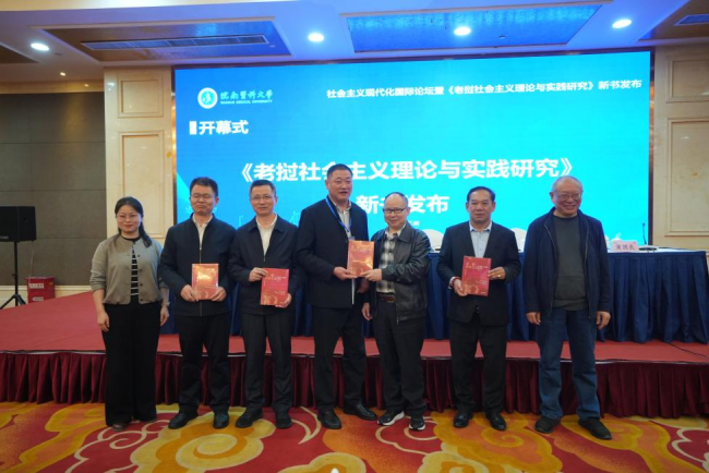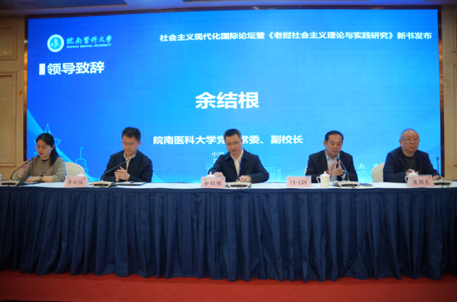 4月11日,“社会主义现代化国际论坛”在江城芜湖隆重举行,本次论坛由中共中央对外联络部当代世界出版社与皖南医科大学联合主办,由皖南医科大学社科联和马克思主义学院共同承办。皖南医科大学党委常委、副校长余结根,老挝人民革命党中央宣传部副部长、《人民报》总编辑万赛·达温雅,中联部当代世界出版社社长、总编辑李双伍,中国人民大学国际关系学院教授、中国国际共运史学会副会长蒲国良出席会议。来自老挝及中国人民大学、中共中央党校(国家行政学院)、中国社会科学院大学、复旦大学、上海交通大学、上海社会科学院、云南大学、华中师范大学、广西大学、广西师范大学、贵州师范大学,以及《马克思主义与现实》《科学社会主义》《社会主义研究》《当代世界社会主义》《当代世界》《社会主义论坛》编辑部和《云南日报》社等近百位专家学者齐聚一堂,围绕“社会主义现代化理论探索与实践创新”主题展开深入研讨。皖南医科大学马克思主义学院全体教师全程参加会议,聆听主题报告。
