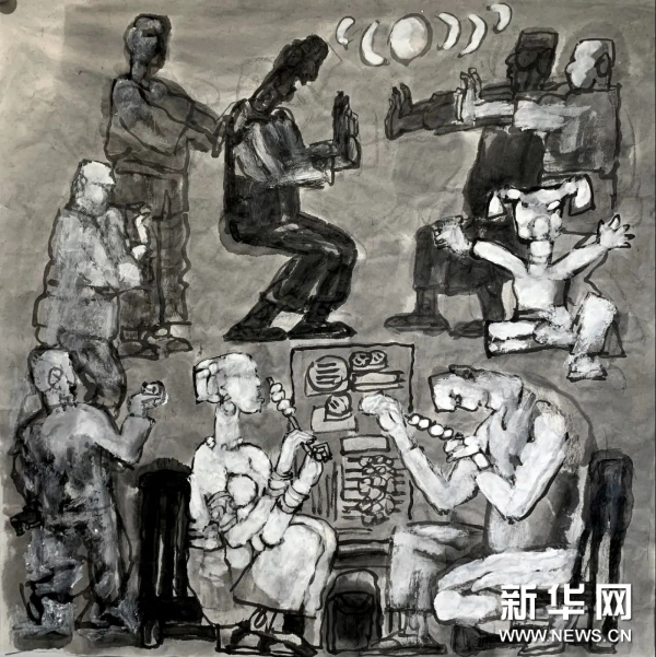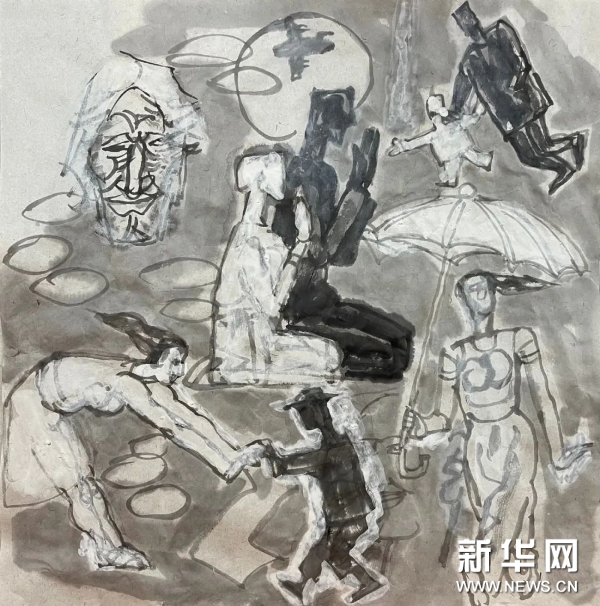 杨晓阳经过多年的实践与思考,探索水墨人物画的新形式,在坚持水墨材料本体特点的基础上向“题材模糊化;主题多义化;章法多维化;造型意象化;用笔书法化”的五化方向探索。形成“搜尽奇峰打草稿”般的丝路人物画独特面貌,打破了以往题材主题的单一性,在章法造型方面更加自由,以书法水墨的传统方式表现出即兴、丰富、深邃、随意生发、层层递进的新水墨意境。