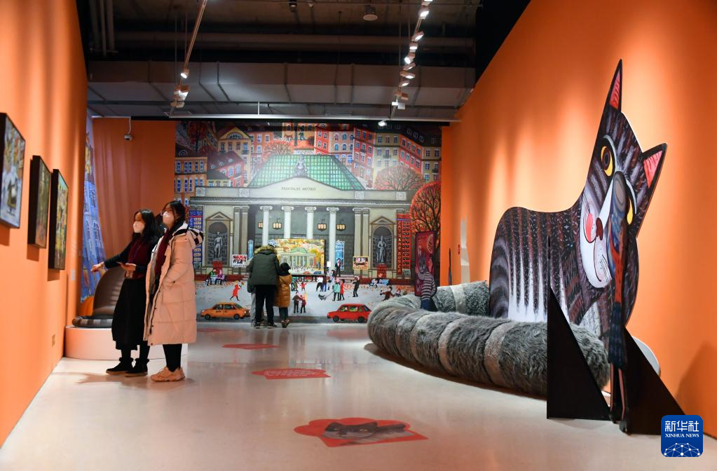 1月15日,观众在“寻喵启事”艺术展上观看展出的画作。新华社记者 任超 摄