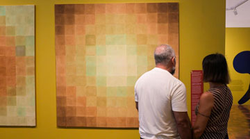 展览作品还嵌入了不少科技元素。一件装置作品用快递箱与咖啡杯构建出一条“空中之路”,再现无人机在中国配送咖啡的场景。此外,由于多数绘画作品采用马赛克形式呈现,观众需退后数步,甚至借助手机上的取景框才能窥见全貌。“希望让巴西观众体验中国无处不在的数字生活方式。”阿鲁达解释说。