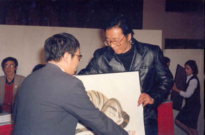 一九八八年,在国家体委举行的亚洲十佳运动员颁奖大会上石愚给棋圣聂卫平颁发奖品——虎。