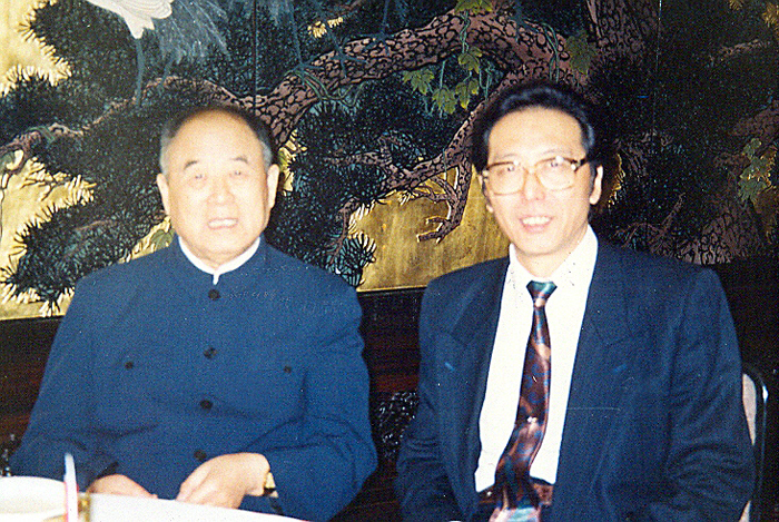 1992年与中央军委原副主席、中国人民解放军总政治部主任李法生在宴会上。