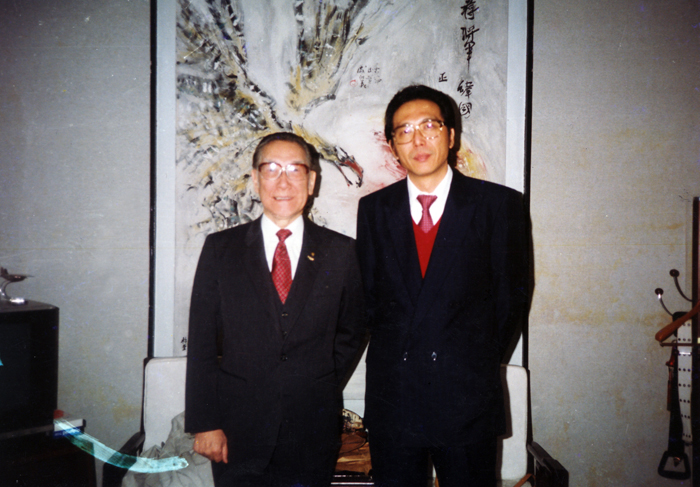 1991年,蒋纬国将军在台北中华战略协会会见石愚。