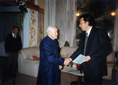 1991年,应邀赴日东京高岛屋举办个人画展。日本公明党委员长竹入义胜和夫人观赏画展。