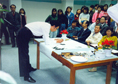 1991年赴台讲学和举办个人画展。图为应台南成功大学邀请演讲后现场作画。