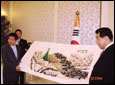 2004年9月,全国政协主席贾庆林访问韩国。石愚的国画作品《吉祥图》作为国礼赠送韩国总统卢武铉。