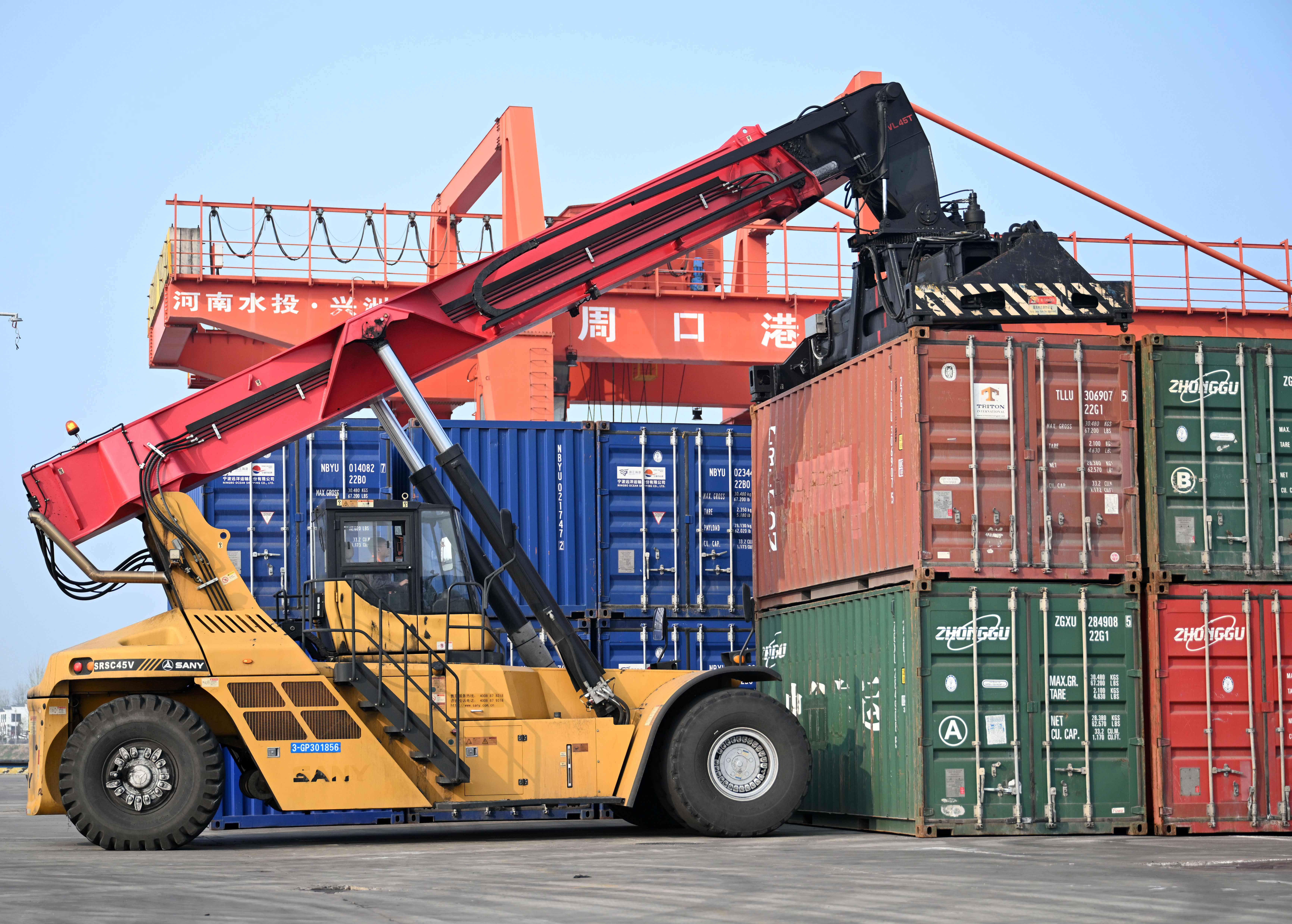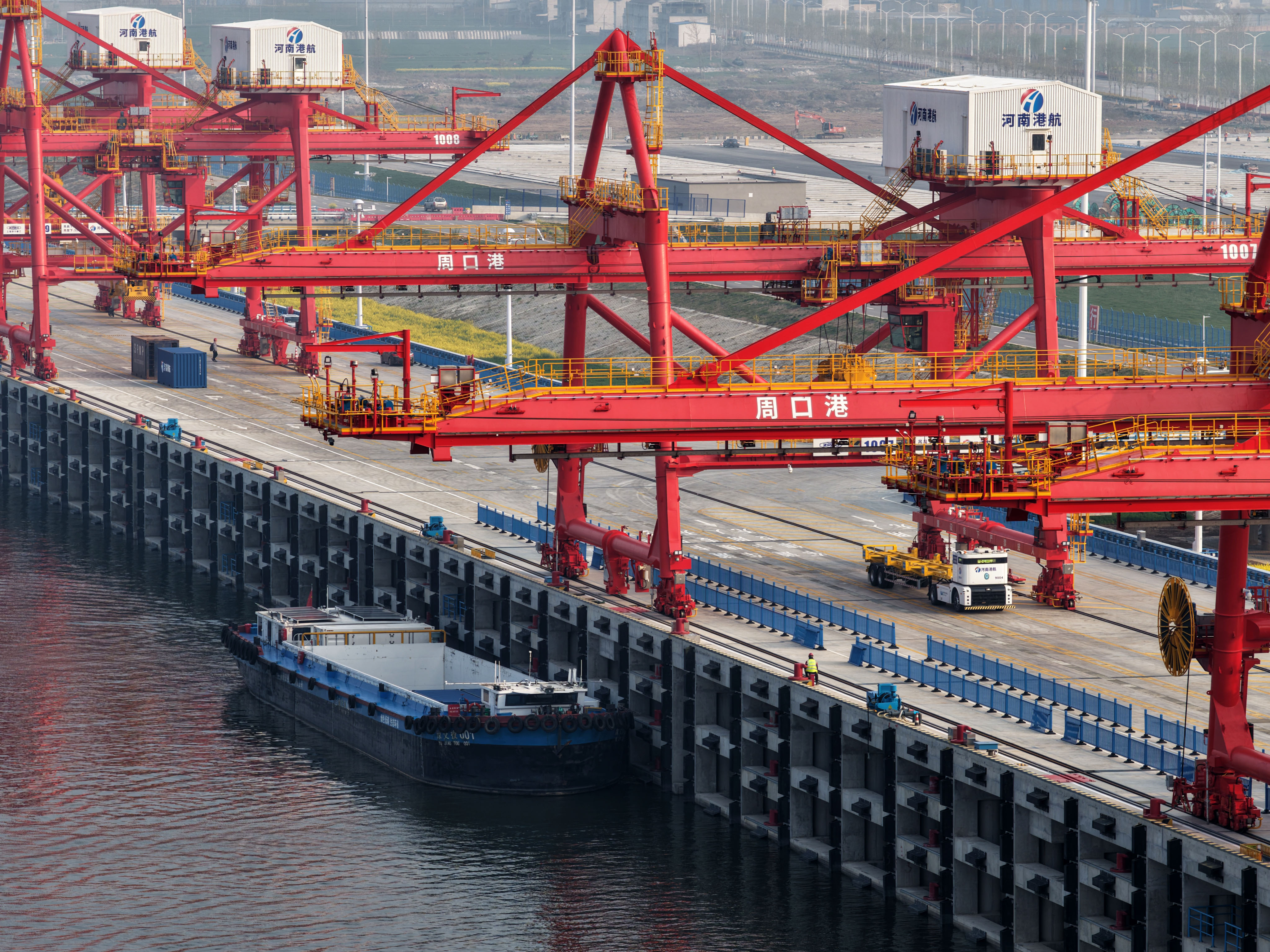 “周口港中心作业区建设13个集装箱泊位,设计年通过能力107.5万标箱。”河南港航集团党委书记、董事长吕维前介绍,像盾构机、大型发电设备这样的“国之重器”,也能从周口下水,沿着江淮运河、长江,运达全球市场,“河南自此有了真正属于自己的出海口,打开了中原乃至中西部出海的便捷通道”。