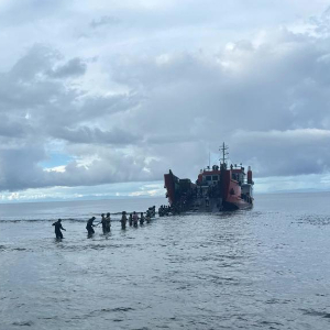 在所罗门群岛瓜达尔卡纳尔省,当地村民搬运中国援助宽带网络项目所需的物资(4月19日摄,手机照片)。